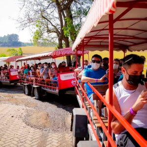 Passeio de trenzinho para todas as idades na fazenda, visita ao pomar de frutas - se estiver na época e dia da colheita, pedalinho, telégrafo, maravilhosos jardins japonês e lagoa, casa da árvore centenária, casa do tarzan, clube náutico.